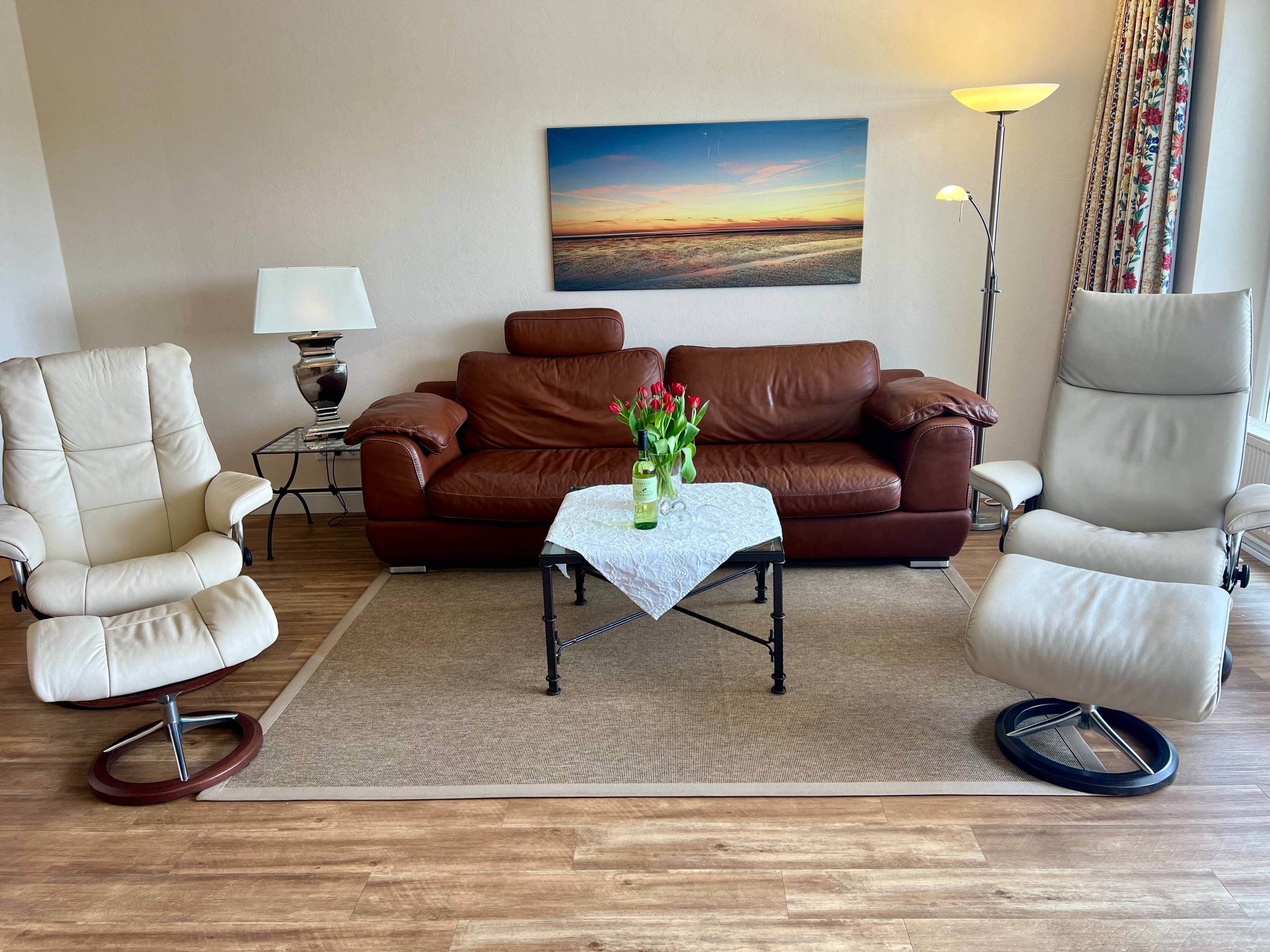 Genießen Sie schöne Tage am Meer. Exklusive Ferienappartements, die meisten mit weitem Blick über das Wattenmeer. Gesunde Nordseeluft pur. Und wenn am Horizont die Sonne untergeht dann erleben Sie es aus erster Reihe. Sehr zentral und ruhige Lage. Innerhalb von 3 Minuten erreichen Sie Strand, historischen Fischereihafen, Meerwasser-Hallenbad "Wellarium", Kurverwaltung, Kurmittelhaus, Zentrum, Ärztehaus und Apotheke.